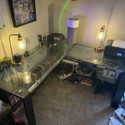 Modern L-Shaped Glass Desk with Storage – Sleek Executive Style - Great Condition$350Troy, MI