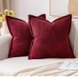 MIULEE Decorative Throw Pillow Covers for Couch Bed Livingroom 18x18 Inch Set of 2 Burgundy Boho Accent Throw Pllows Broadside Striped Patchwork Soft $15Novi, MI
