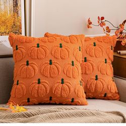 MIULEE Fall Pumpkin Throw Pillow Covers Decor Set of 2 Orange Green Stem 18x18 Decorative Cushion Covers Soft Plush Faux Fur Couch Pillows for Autumn $18Novi, MI