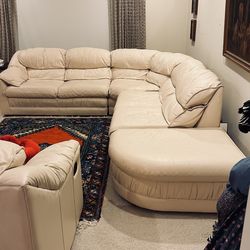 Cream Leather Sectional S shaped Couch Sofa$975Farmington Hills, MI
