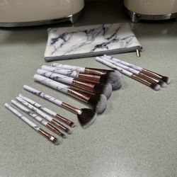 makeup brush set with white marble-look handles, rose gold ferrules, and a matching travel pouch. $8Dearborn, MI