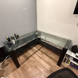 Modern L-Shaped Glass Desk with Storage – Sleek Executive Style - Great Condition$150Troy, MI