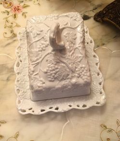 Vintage White Glass Grape CHEESE DISH WITH LID , EMBOSSED GRAPES *Rare*$30Holly, MI