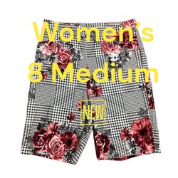 Women's Patchington 8 Medium Houndstooth Rose Shorts Bermuda Pull On Stretch New$18White Lake Charter Township, MI