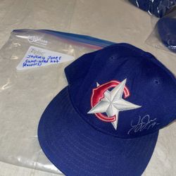 Game Used Jeremy Jones Autograph Charlotte Rangers Hat New Era 7 5/8 MiLB Wool$40Oxford, MI