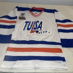 Tulsa Oilers Chl Bill Levins Champions Jersey Mens Large Blue Clean Sewn 1993$150Oxford, MI