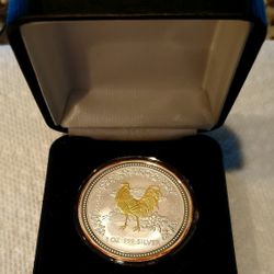 2005 Australian Lunar Series "Year of the Rooster" Gilded 1 Dollar Silver Coin$165Columbiaville, MI