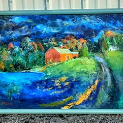 Mid Century Modern Orange Blue Landscape Painting Signed MOORE$985Saginaw, MI