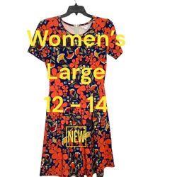 Women's LuLaRoe Large 12 14 Dress Floral Navy Orange Crewneck Short Sleeve NWT$20White Lake Charter Township, MI