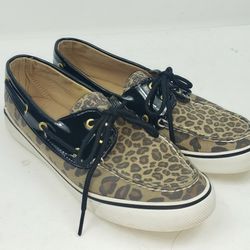 Sperry Womens 8.5M Boat Deck Casual Shoes Leopard Print Black Leather Flats$17Orion Charter Township, MI