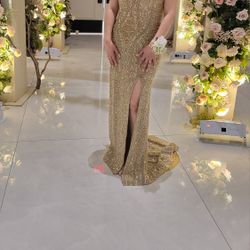 Beautiful Long Gold Metallic Dress. In A Side Medium $250Shelby Township, MI