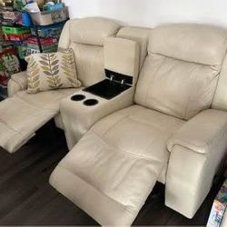 Stunning Genuine Creamy White Leather Reclining Sofa + Love Seat – Pure Luxury$250Milford, MI
