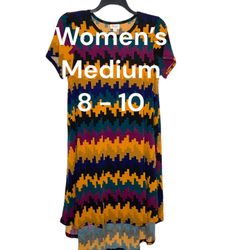Women's LuLaRoe Medium 8 - 10 Dress Mustard Green Pattern Crewneck Short Sleeve$15White Lake Charter Township, MI