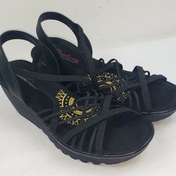 Skechers Parallel Crossed Wires Strappy Wedge Black Womens Sandals Shoes Size 11$27Orion Charter Township, MI