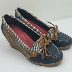 Sperry Womens 8.5 M Boat Deck Shoes Platform Wedge Heels Blue Lace Up$22Orion Charter Township, MI