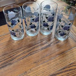 A Set Of 4 Blue Hydrangeas Color Glasses $20Grand Haven, MI