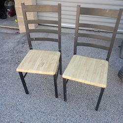 Two 2 dining room table kitchen chairs black & fake wood colored $10Kentwood, MI