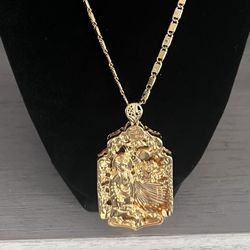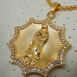 Virgin Mary Mother Of Jesus Christ Son Of God Gold Tone Faux Diamonds Necklace $15Rockford, MI