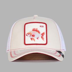 Vintage Embroidered Animal Patch Trucker Cap Fish Koi White $22Holland, MI