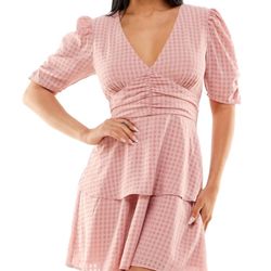 SPEECHLESS Womens Pink Ruched Zippered Back Tie Tiered Skirt Lined Gingham Short Sleeve V Neck Short Party Fit + Flare Dress Juniors M$10Kentwood, MI