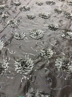 Silver taffeta w flower design 132 inch round$20Hazel Park, MI
