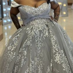 silver wedding dress size Large $510Dearborn, MI