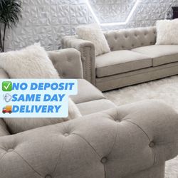 DELIVERY 🚚 Grey Tufted Studded Couch & Love Seat $485Detroit, MI