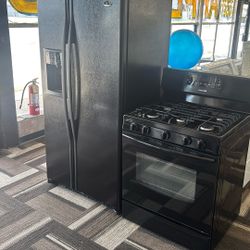Black Fridge Side-By-Side Black Five Burner Gas Stove Combo Set$999Sterling Heights, MI