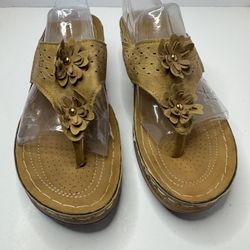 Women's Tan Vegan Thong Wedge Sandals Size EU40$22Bloomfield Hills, MI