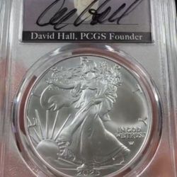 Silver Eagle 2025 1st Strike David Hall Hand Signed Pcgs Ms70$600Grosse Ile Township, MI