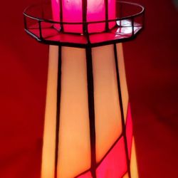 Vintage Dale Tiffany Lighthouse Stained Glass Nautical Lamp - White & Red Stripe - 10.5" Tall.$80Harper Woods, MI