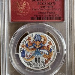 2024 P125 Australia 50C PCGS MS70 Year Dragon 1/2oz Ag Orange Right$55Sterling Heights, MI