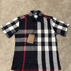 Button Up Burberry Shirt, Color Navy/white/red, Size Large (runs Small Fits Like A Medium) $150Clinton Township, MI