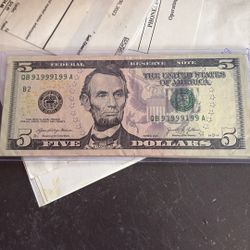 2021 Five Dollar Bill Serial #qb (contact info removed)9 A$100Garden City, MI
