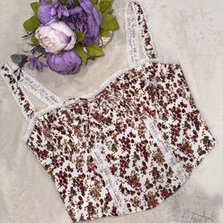 NWT Boutique White Floral and Lace Corset Top$23Royal Oak, MI