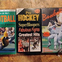 Lot of 3 Vintage 1990 Sports Bloopers VHS Tapes: Football, Hockey, Baseball Good Condition Untested$8Southgate, MI
