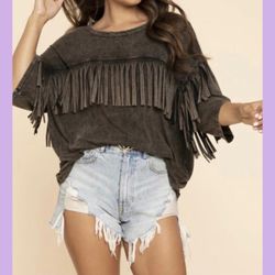 NEW Womenâs Boutique Mineral Wash Fringe Top$25Royal Oak, MI