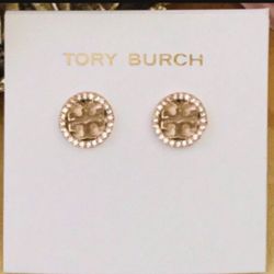 Tory Burch round gold pave crystal T logo Miller stud earrings $44Macomb, MI