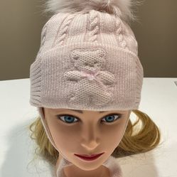 Girl’s Thick Knit Lined Pale Pink Winter Hat Real Fur Pompom, 3-6 years old$13Farmington, MI