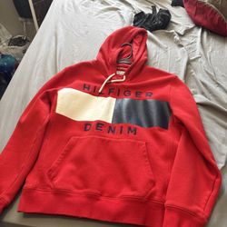 Tommy Hilfiger Mens Hoodie Large Red Flag 90s Streetwear Hooded Sweatshirt Logo$20Westland, MI