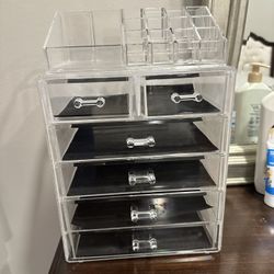 MAKEUP ORGANIZER DRAWER SET 4 LARGE , 2 SMALL AND 16 SLOT REMOVABLE TOP TRAY WITH BLACK LINING INCLUDED FOR DRAWERS $15Dearborn, MI
