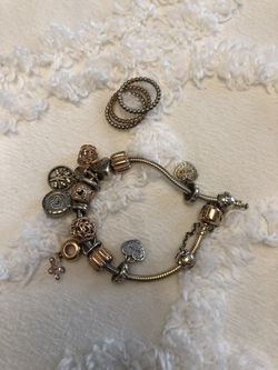Pandora mix of rose gold and silver charms, a matching 3 rings.$210Dearborn Heights, MI
