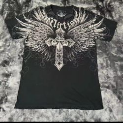 Black Affliction shirt with white wings and cross s/m $20Clinton Township, MI