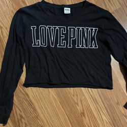 Navy Blue Long Sleeve white 'Love Pink' logo Crew Neck Crop Shirt Top size small$19Macomb, MI