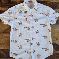 Denim & Flower Ricky Singh Christmas Shirt Mens M Santa Claus Water Swimming NWT