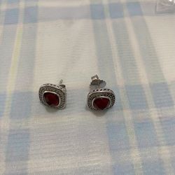 David Yurman Sterling Silver Earrings With Red Gemstones Surrounded By Tiny Diamonds $277Southfield, MI