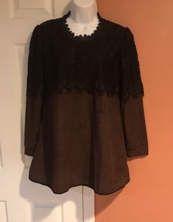 Women’s Brown Front/Back Black Lace Decorated Tunic, size L$17Farmington Hills, MI