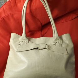 Roberta Gandolfi Genuine Leather Bow Tote Bag Womens Cream Shoulder Bag$70Harper Woods, MI