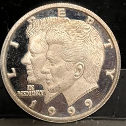 1999 Liberia 10 Dollars • John Kennedy + JFK Jr Memorial Commemorative Proof Coin, 1/2 oz Pure Silver (.999 Fine) • RARE FIND$70Augusta, MI