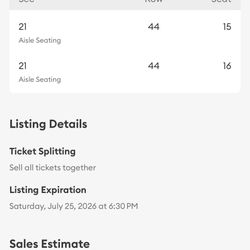 Morgan Wallen Saturday 7/25$800Commerce Charter Township, MI